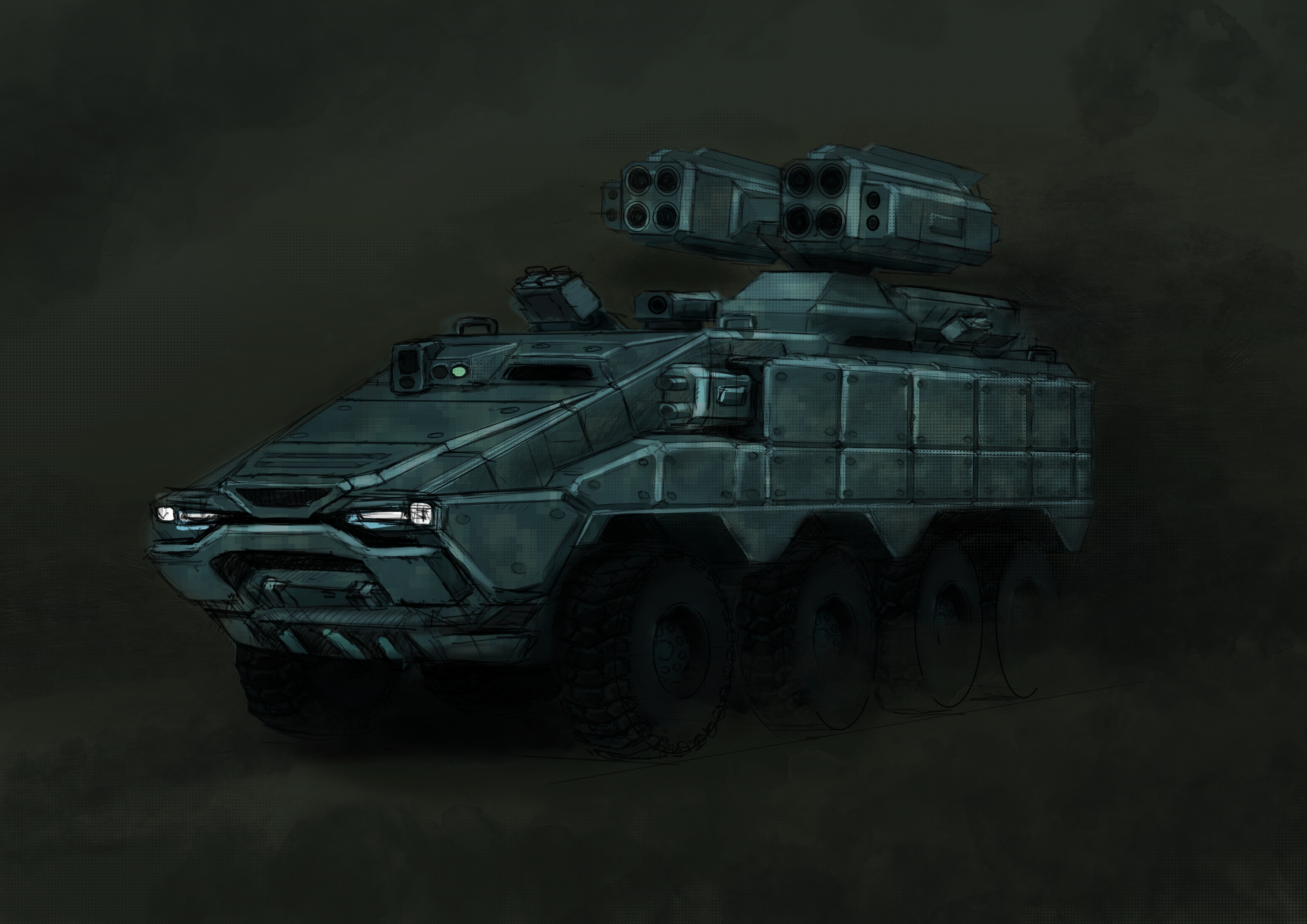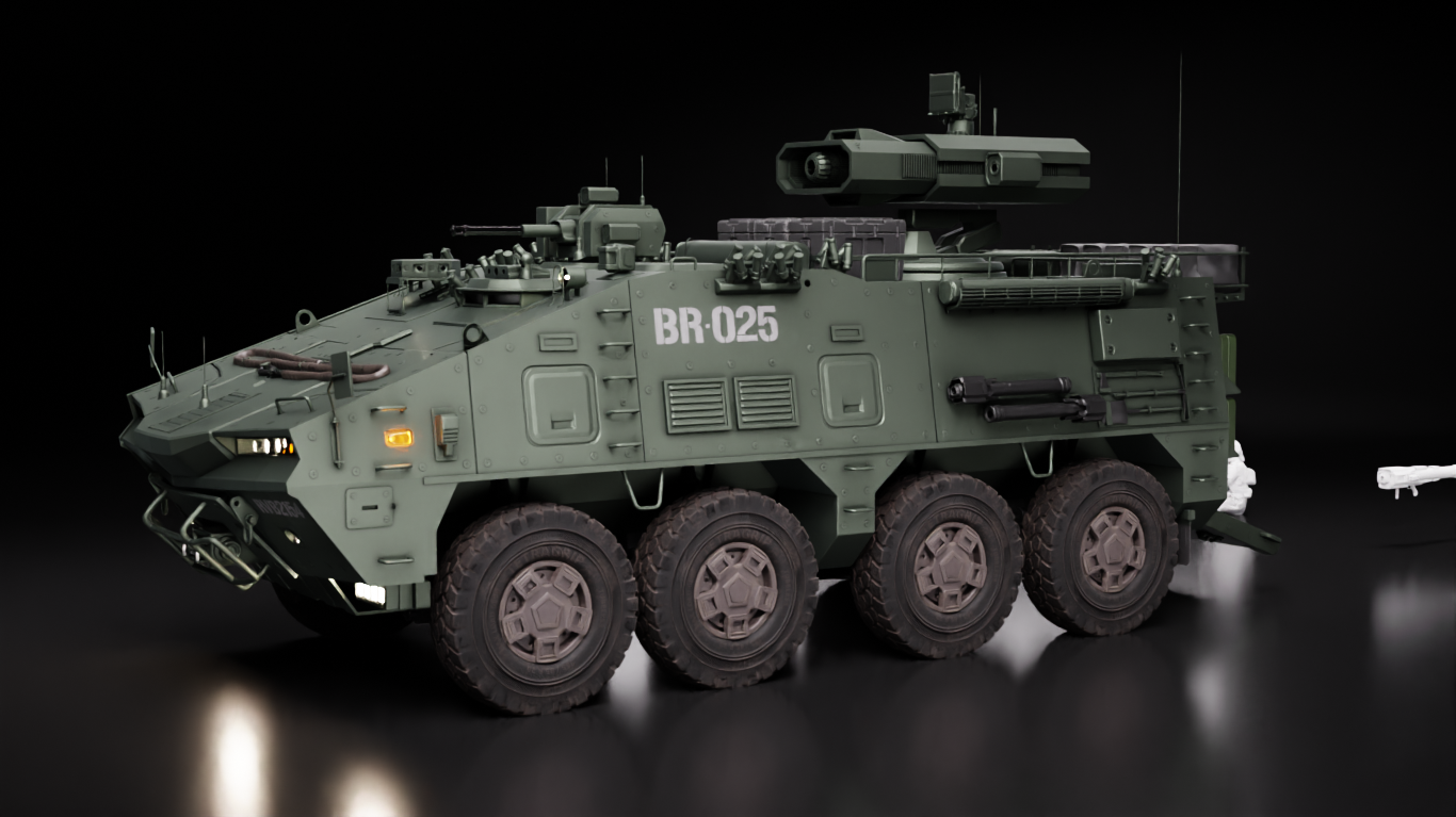The APC was designed for a human resistance operating in a near-future conflict against autonomous machines. It features an EMP-based weapon system intended specifically to disable robotic targets rather than engage in conventional firepower. The design is grounded in modern military engineering, prioritizing crew protection, mobility in damaged environments, and tactical flexibility. The model was created as a story-driven, production-ready asset prepared for animation and further use in film or games.