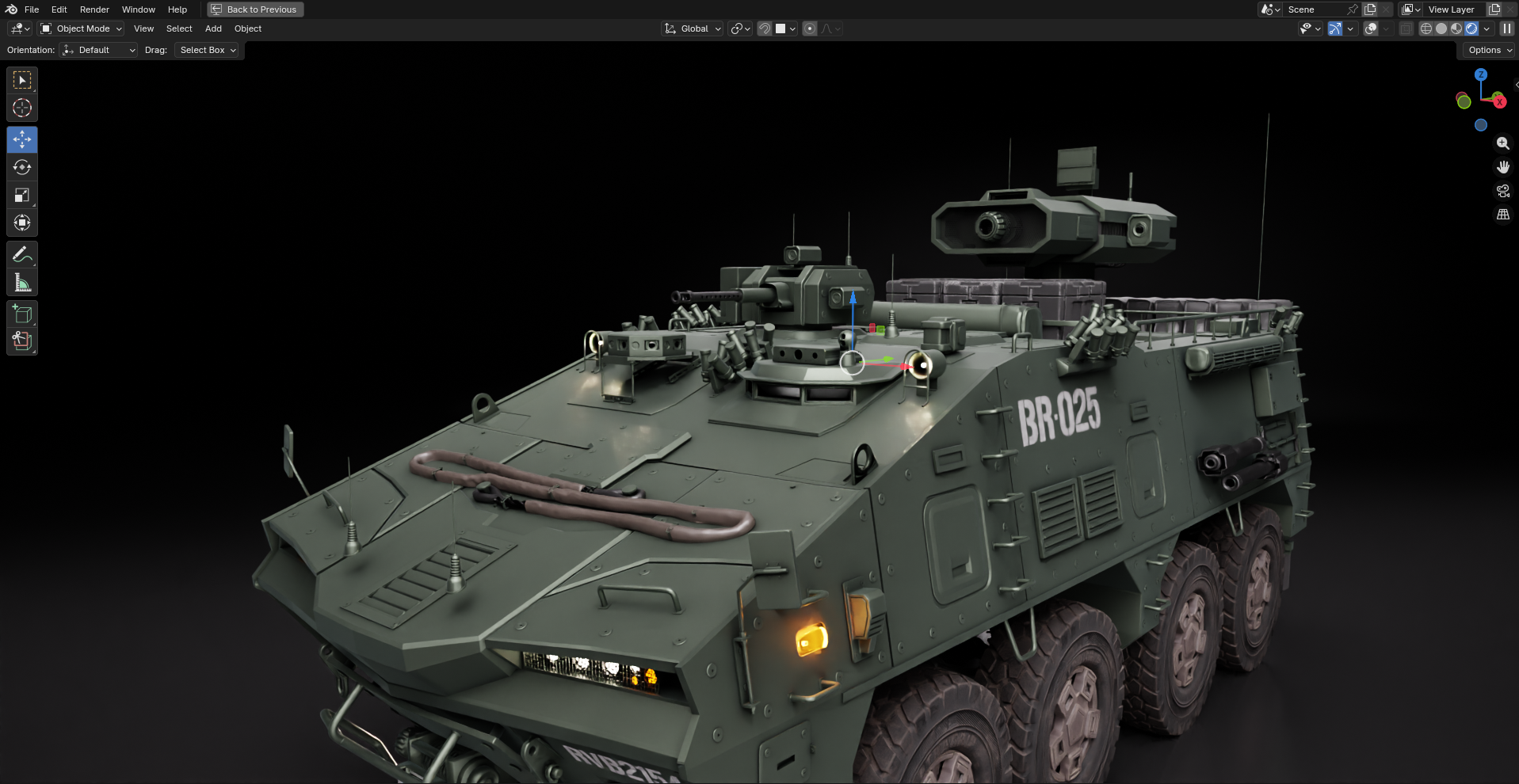 The goal of this project was to design and build a believable armored vehicle with real-world construction logic, suitable for use in both cinematic shots and real-time environments.